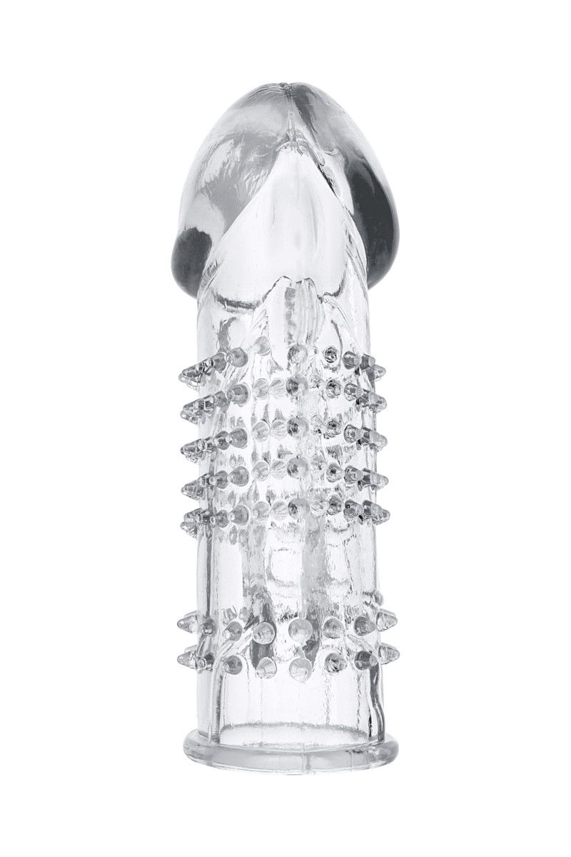 Хоть наденет эту прозрачную насадку мужчина, сексуальное удовольствие получит женщина. Ведь именно она сможет наслаждаться с виду колючими, но очень мяконькими шипами, опоясывающими ствол пениса. А также небольшим отростком, обеспечивающим массаж клитора при каждом толчке.