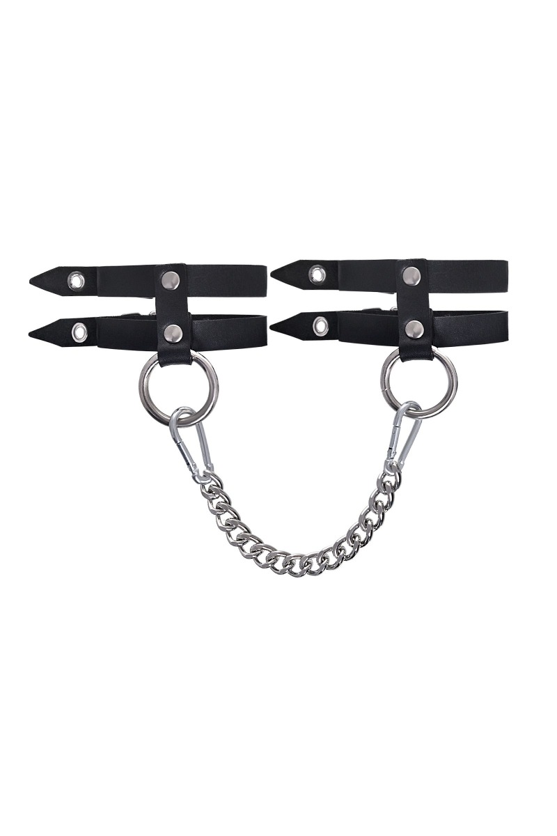 Эти однослойные кожаные оковы из двух ремешков могут стать стильным аксессуаром, а могут послужить вашим целям по своему прямому назначению. Частичное обездвиживание и невозможность двигать руками или ногами дают вам полную власть над партнером – взрослые игры для взрослых. Наличие двух колец и карабинов, соединенных между собой металлической цепочкой, позволяет использовать изделие как раздельно – аксессуар-манжеты, так и как оковы для фиксации. К широким металлическим кольцам также можно присоединить и другие аксессуары при помощи карабинов. Благодаря универсальному размеру оковы могут использоваться и мужчинами, и женщинами. Размер легко регулируется с помощью металлических пряжек, органично вписывающихся в общий стиль. Длина манжет - 30 см, ширина ремешков - 1,6 см. Длина сцепки - 19 см.
