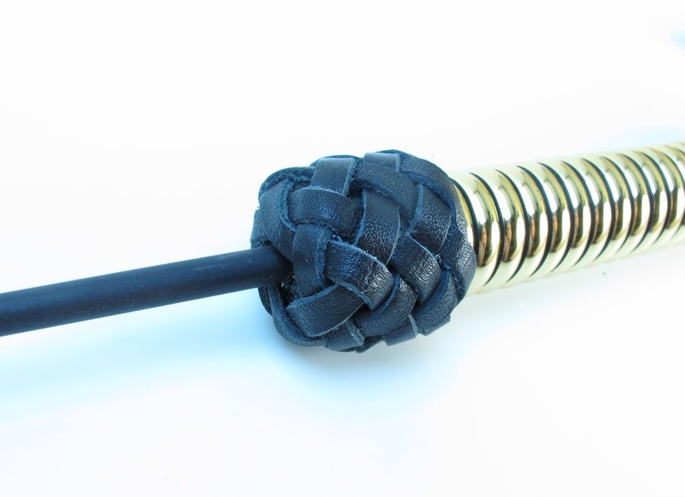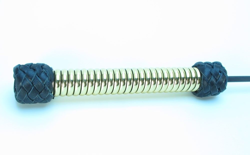 Чёрный королевский стек с золотистой рукоятью. Выполнен из кожи. Длина рукояти - 21 см.