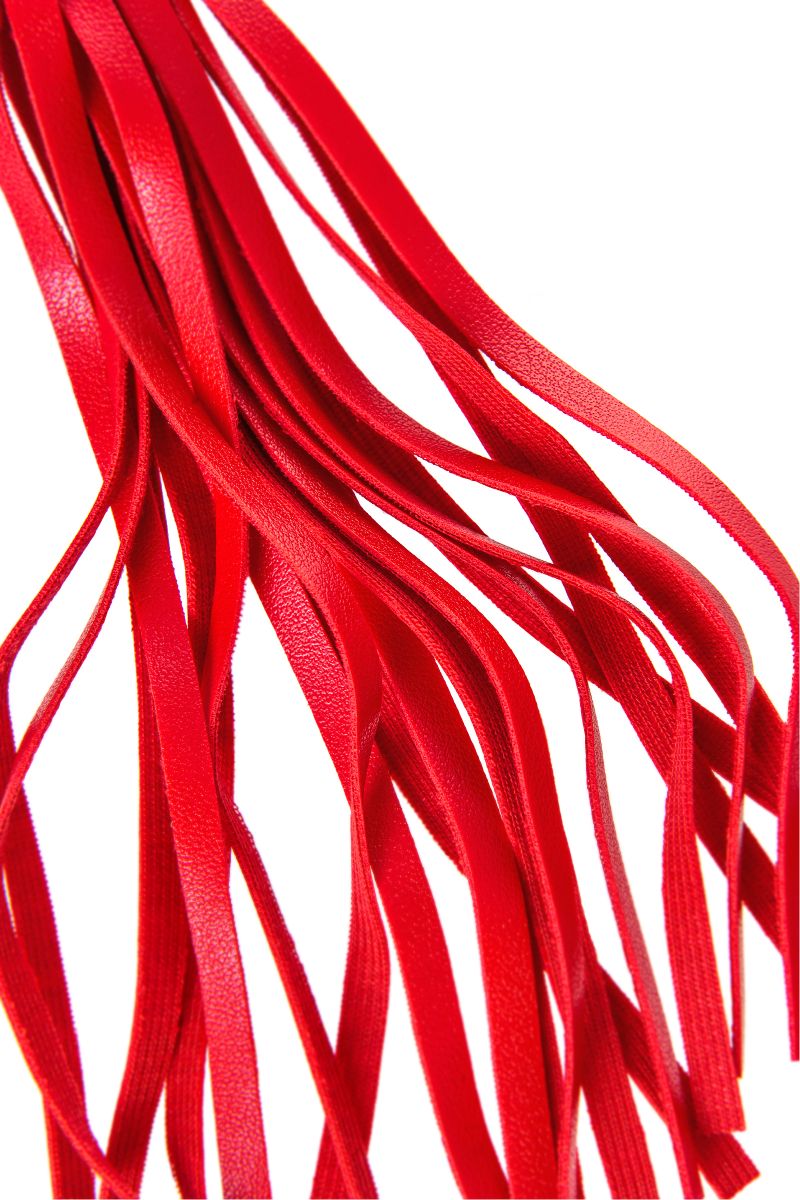 Доминирование и подчинение с помощью ограничения свободы — это еще не все, что вы можете сделать друг с другом. Небольшой флоггер пригодится для разогрева или легкого наказания провинившегося партнера. Новичок вы, или опытный игрок, этот изящный аксессуар найдет применение в вашей спальне. Ручка из черной PU кожи с особым плетением удобно лежит в руке. Гладкие хвосты рабочей части плети выполнены из яркого красного материала. Серьезная порка с ним не получится, но сразу ясно: в чьих руках эта плетка, тот и устанавливает правила. Длина хвостов - 16,5 см.